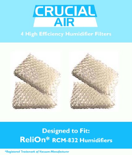 This is a high quality 4 PK Wicking Humidifier Filters Designed To Fit ReliOn Humidifier models RCM832 (RCM-832) RCM-832N, DH-832 and DH-830. Compare To Part # WF813. These filters are designed for "wicking" moisture from a water reservoir into the air. Wicking filters must be clean in order for them to work properly, so it is recommended to replace your filters every 1 to 3 months for optimal performance. Absolutely essential for allergy sufferers. Designed & Engineered By Crucial Air.This is a generic product designed and engineered in the United States by Crucial Air. This is not a ReliOn® OEM product and is not covered under any ReliOn® manufacturer's warranty. The ReliOn® brand names and logos are the registered trademarks of their respective owners. Any use of the ReliOn® brand name or model designation for this product is made solely for purposes of demonstrating compatibility.