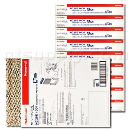 Save money with a generic equivalent! Honeywell HC22E 1003 Humidifier Pad, 10-Pack The "heart" of your whole-house humidifier, the Water Panel (also known as humidifier filter, water pad, evaporator pad), should be changed at least once per heating season. The pad is constructed of an expanded aluminum honeycomb mesh that is dipped in a clay coating. This coating is able to absorb and hold water. Warm, dry air is forced through the wet pad to introduce water vapor into the home. Product Features: Factory original OEM part Dimensions approximately - 9 13/16" x 9 1/2" x 1 1/2" Pad change instructions are printed on product carton Agion Antimicrobial Coated Fits the Following Humidifiers: Honeywell HE260A Honeywell HE260B Honeywell HE360A Honeywell HE360B Honeywell HE365A Honeywell HE365B Honeywell HE300A Honeywell HE200A Honeywell HE250A Humidifier water panels (sometimes referred to as a filter) are a regular replacement item in whole-house humidifiers. For the best performance we recommend that the Water Panel be replaced once a year, either prior to the start or at the end of the heating season. If you have especially hard water - the panel can be replaced 2 times per year.